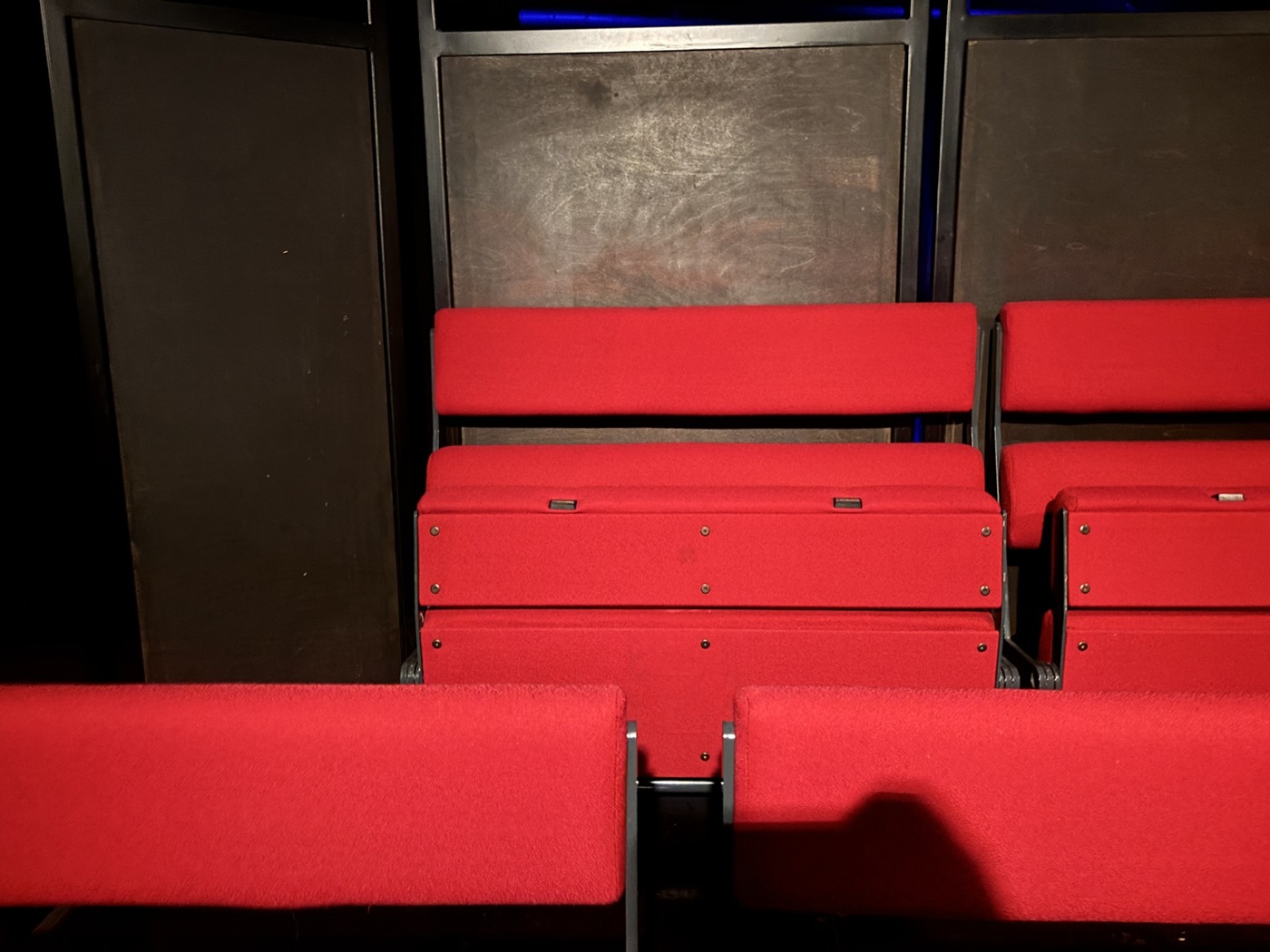 The theatre opened in 1998 with an auditorium full of reclaimed church pews and mismatched chairs. It gradually shifted to red and grey fold out chairs – the type you didn’t want to sneeze too hard when sitting on. During these years, the theatre had Early Bird Seating. This often involved one person at the front of the queue armed with a laundry basket of jumpers to claim the best seats extended family and friends.