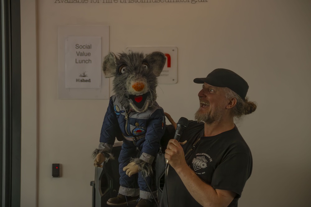 Bemmie is the storyteller of Space Shanty. He’s a Ratronaut brought to life through puppetry on video and AI. The story thread is one of fact and fiction around Bristol’s involvement with space travel.